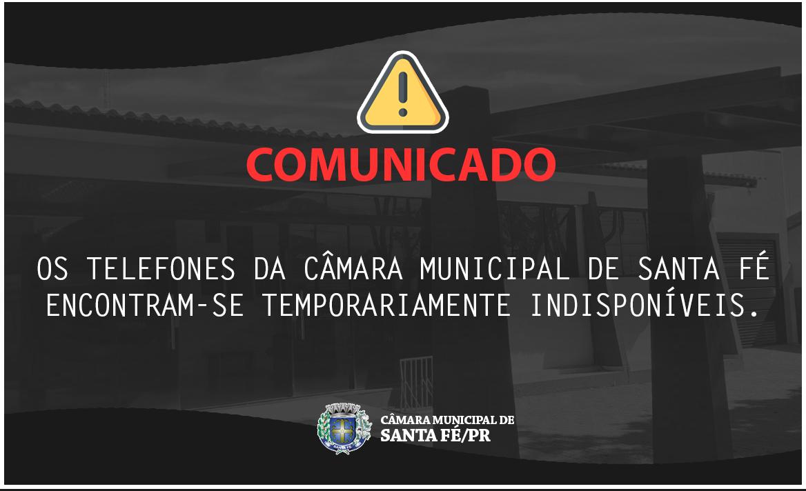 Os telefones da Câmara Municipal encontram-se temporariamente indisponíveis. Por hora, o contato remoto poderá ser realizado por meio do nosso e-mail....